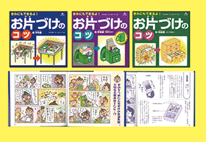 片づけができないことで失敗してしまう男の子を主人公にしたマンガとイラスト入りの解説で、片づけの大切さとコツを学べるシリーズ。